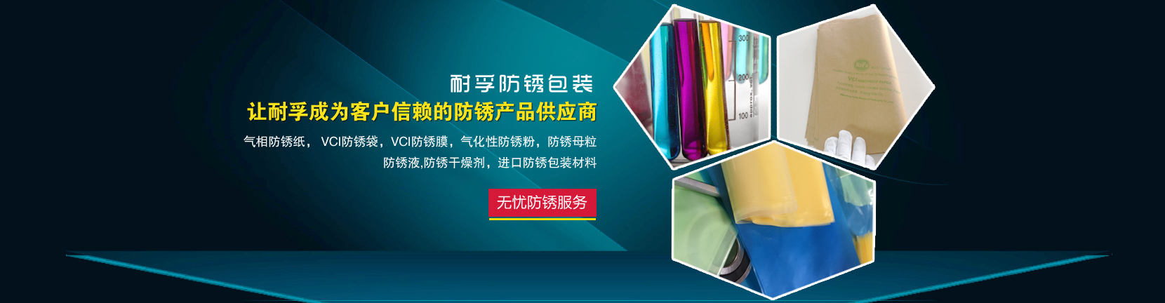 VCI是英文(Volatile Corrosion Inhibitor)的縮寫(xiě),它是一種具有揮發(fā)性的腐蝕抑制劑,簡(jiǎn)稱為氣化性防銹產(chǎn)品。當(dāng)用氣化性防銹產(chǎn)品包裝好被包裝物以后,防銹產(chǎn)品的防銹粒子氣化成氣體,吸附在金屬表面形成保護(hù)膜,切斷金屬離子與水、氧氣接觸的可能性,有效抑制了金屬腐蝕電化學(xué)反應(yīng)的發(fā)生,從而達(dá)到防銹效果。包裝后內(nèi)部的防銹粒子的氣化擴(kuò)散量自動(dòng)調(diào)節(jié),當(dāng)濕度或溫度增大時(shí),防銹粒子的擴(kuò)散量也會(huì)加大, 反之,防銹粒子的擴(kuò)散量會(huì)減小,從而來(lái)自動(dòng)調(diào)節(jié)包裝物內(nèi)部的氣體濃度,讓包裝物始終處于一種最穩(wěn)定的防銹狀態(tài)。